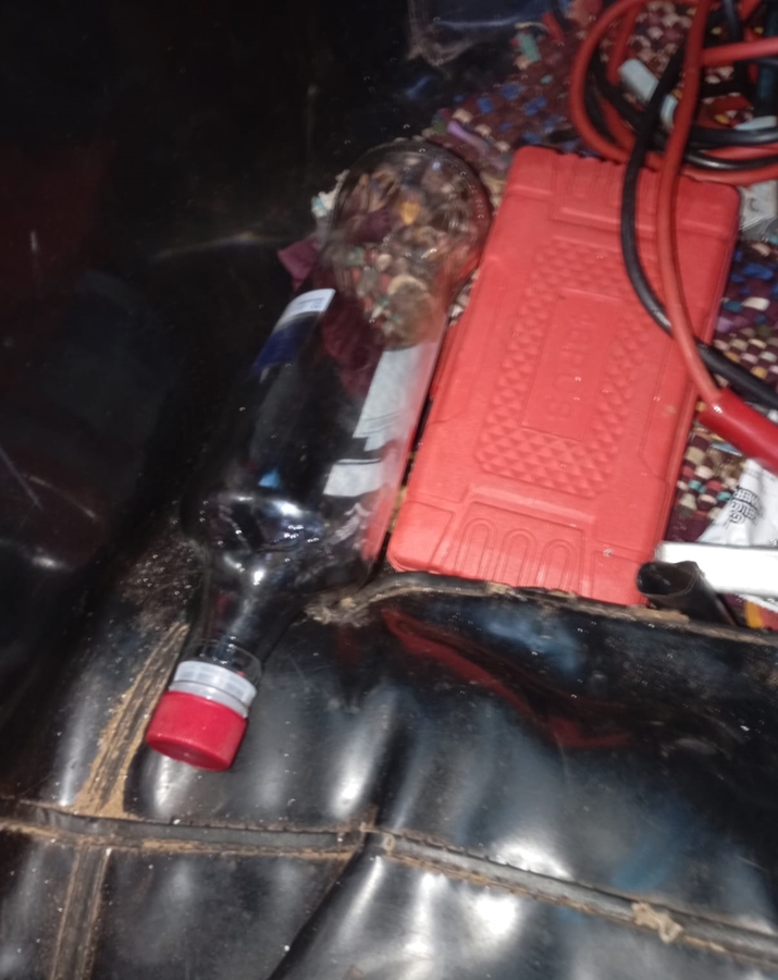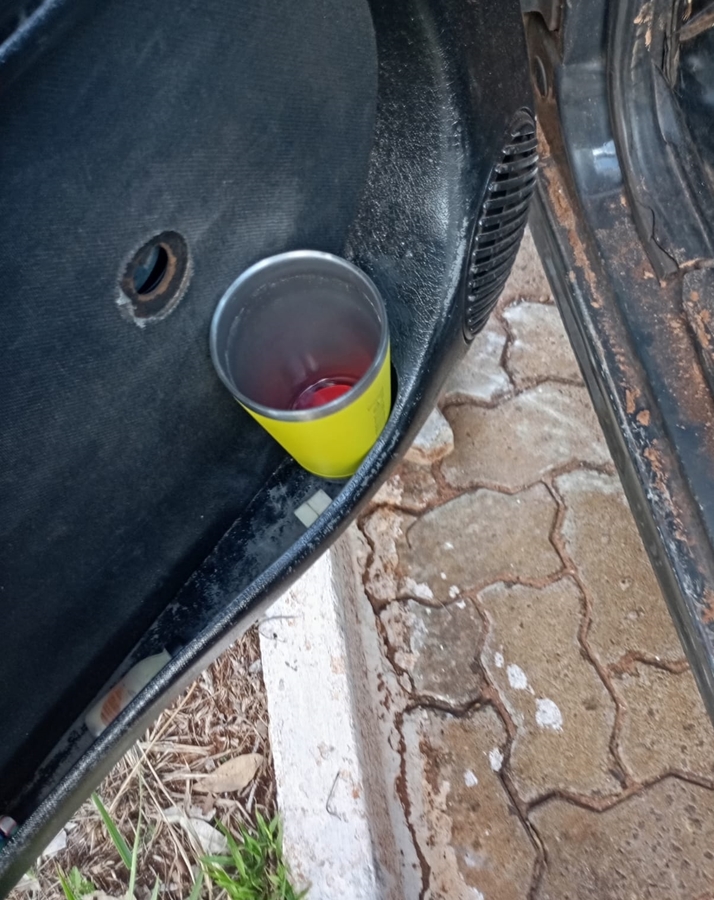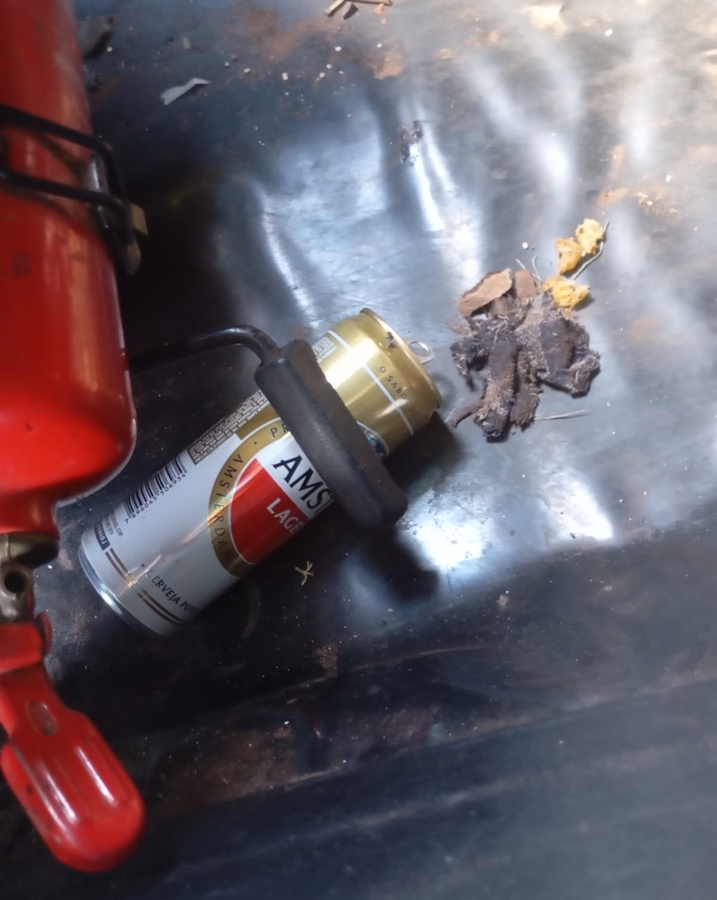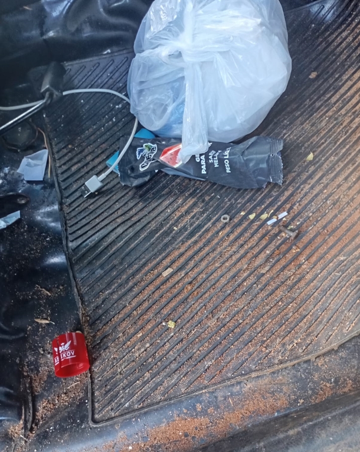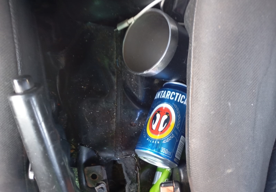 Ao solicitar os documentos obrigatórios, os policiais constataram que o condutor apresentava claros sinais de embriaguez, como fala arrastada, dificuldade de equilíbrio e forte odor etílico. Em vistoria no interior do veículo, foram encontradas diversas latas de cerveja, um recipiente de vodca e um copo com líquido semelhante à bebida alcoólica. Próximo ao câmbio, também foi localizada uma bituca de cigarro com características de maconha.