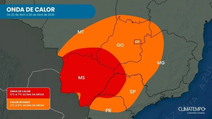 MS está na ‘área vermelha’ para onda de calor com temperatura até 7ºC acima da média